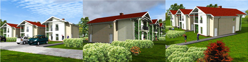 Inwestycja składa się z 3 budynków jednorodzinnych w których są 2 lokale o powierzchni 75 m2 każdy. Jeden zlokalizowany jest na parterze, drugi na I piętrze.